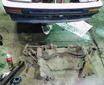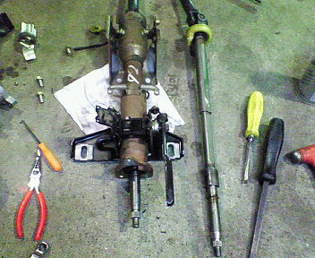 右手に見えますシャフトが、重ステのステアリングシャフト。