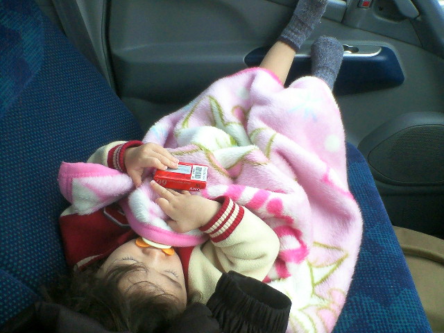 トラックの中での麻理亜san(我が愛娘)