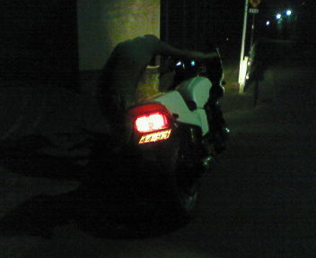 夜もいい時間なのに、男2人。1台はCB750のFC改改。